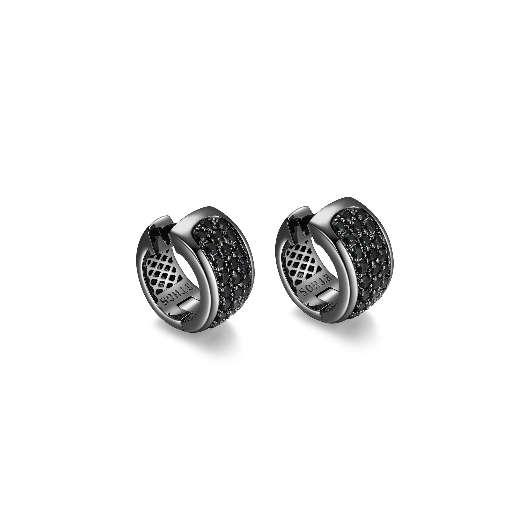 Make a bold statement with these captivating hoop earrings from the Black Ice Collection. Crafted from premium sterling silver with a sleek gunmetal finish, these 15mm earrings feature a continuous line of stunning black sapphires. The deep, rich color of the sapphires adds an air of mystery and sophistication to the piece, making it a standout accessory for the confident, fashion-forward man.