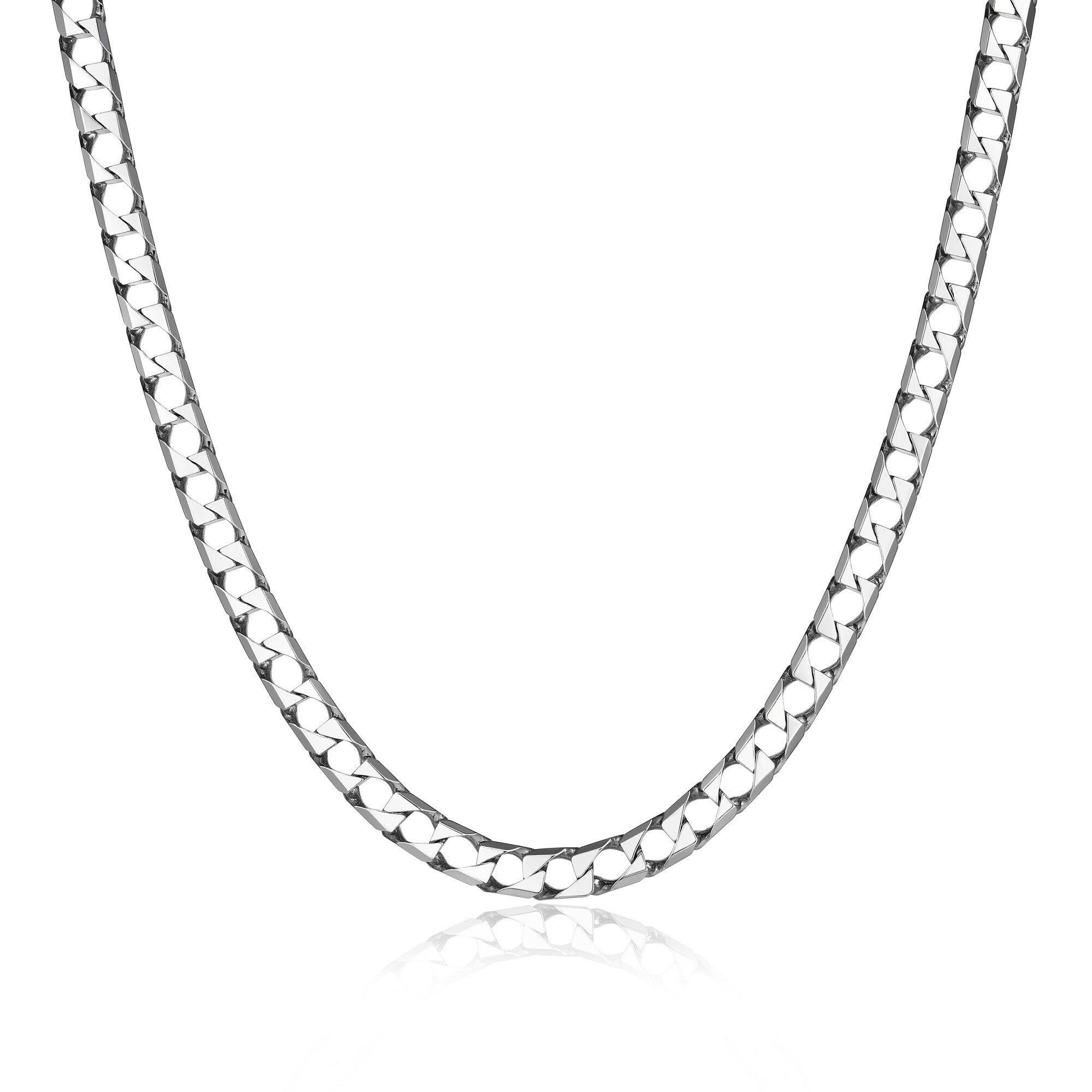 Italian Chain Rhodium Plated Square Curb Necklace - 22" - UN34