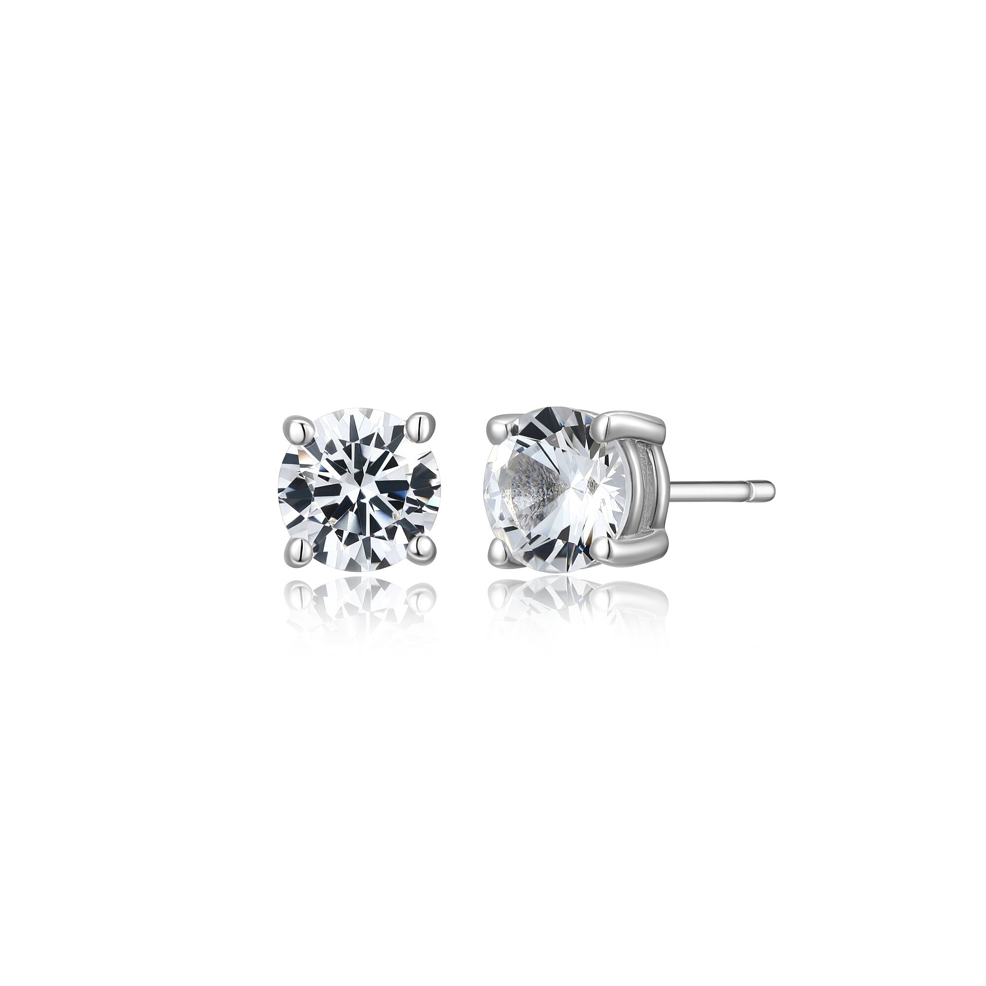 Basic Rhodium Plated Sterling Silver and Created White Sapphire Stud Earrings - UE24W