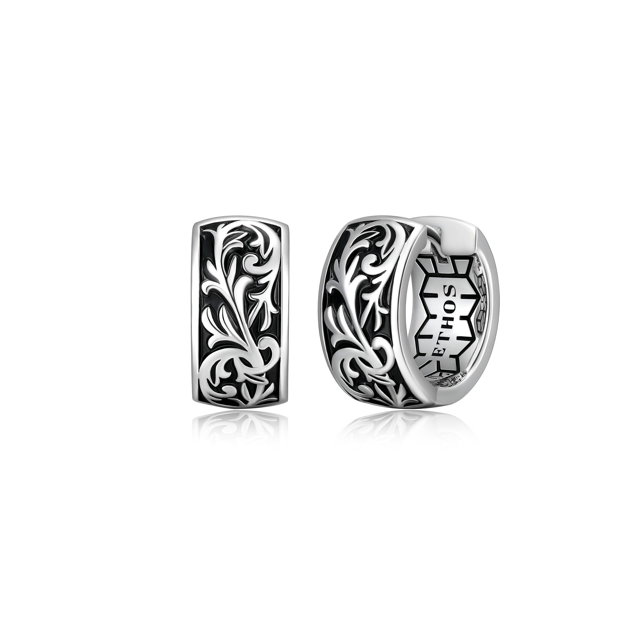 Make a bold statement with these captivating huggie earrings from the Chisel Collection. Crafted from premium sterling silver with a luxurious rhodium plating, these 16mm earrings feature an intricate filigree design finished with a sleek black oxidized effect. The unique combination of the rhodium plating and black oxidation creates a stunning visual contrast that is sure to turn heads. The distinctive filigree design adds a touch of vintage-inspired elegance to these huggie earrings, while the rhodium plating provides a polished and sophisticated look. The secure clasp ensures a comfortable and worry-free fit, allowing you to wear these earrings all day long.